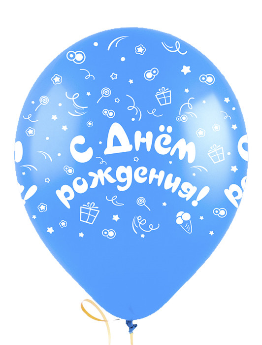 Шар наполнен гелием, обработан доп. обработкой Hi-Float для увеличения срока полета воздушного шара и привязан ленточкой. Ассорти 7 вариантов расцветки, пастель, 3 дизайна на тему "С Днем рождения".